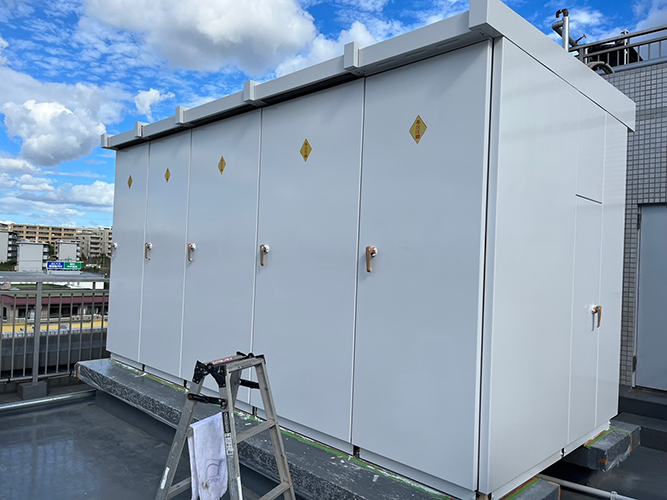 関東一円の塗装工事に対応する神奈川県平塚市のRe:paintです。 今日も元気に外壁塗装や戸建て塗り替えのご相談・ご依頼を承っております。 本日はビル屋上キュービクルの塗装工事の様子をご紹介します。 今後も施工の様子を更新してまいります。 最後までご覧いただきありがとうございました。